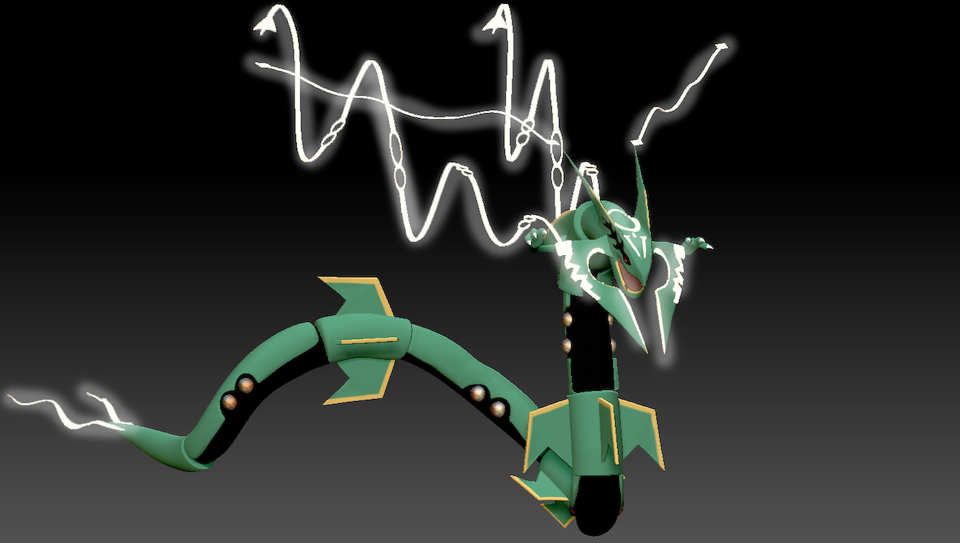 My version of the Pokemon Mega Rayquaza! Done in Zbrush and photo shop.