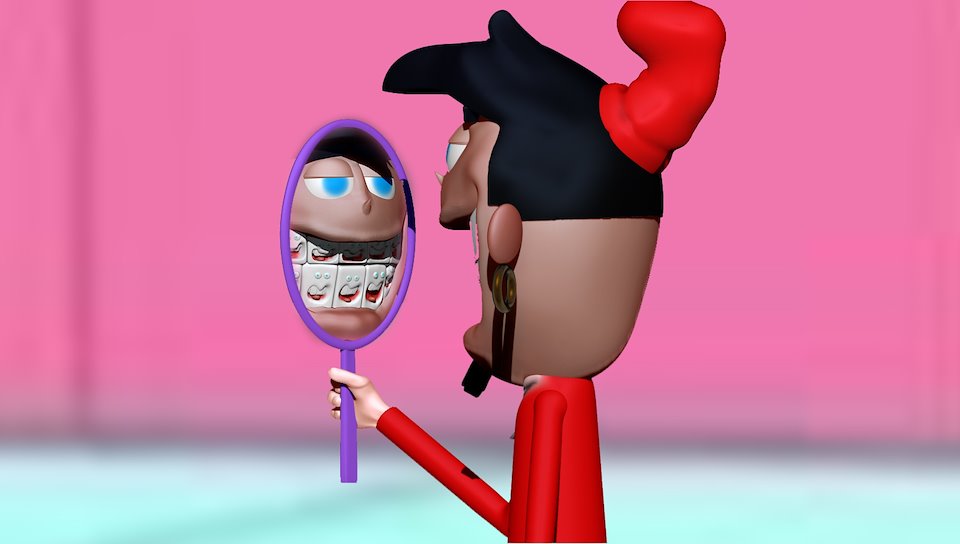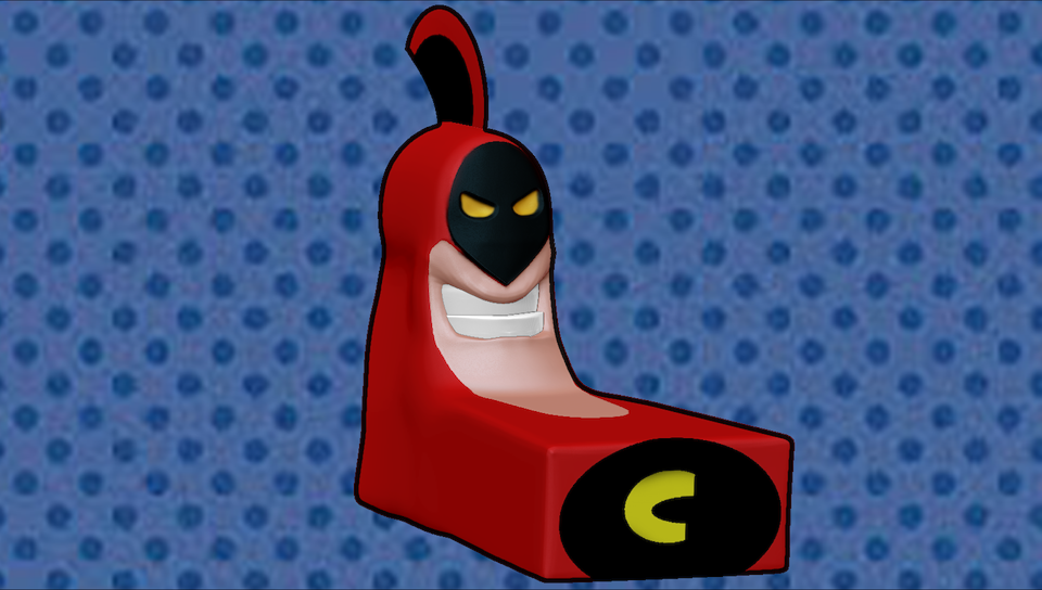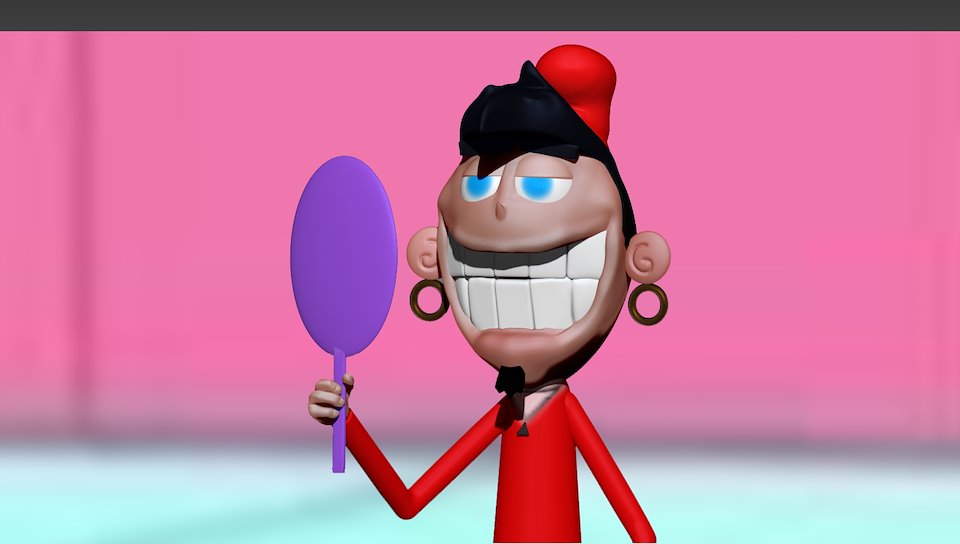 Freaky Fred from Courage The Cowardly Dog, playing with the fiber mesh.